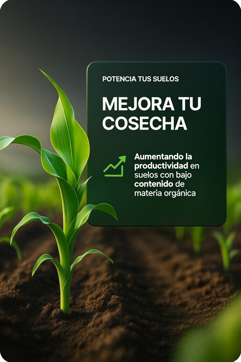 Su fórmula natural elaborada con ácidos húmicos y fúlvicos aumenta la productividad en suelos con bajo contenido de materia orgánica.