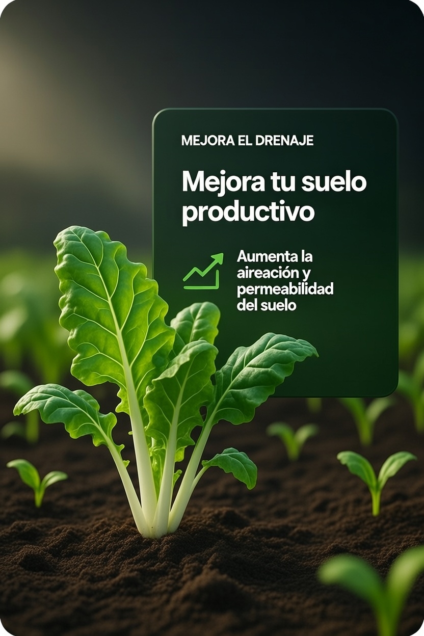 El bajo contenido de materia orgánica impactará positivamente en la estructura de tus suelos franco-arenosos típicos de muchas zonas de Chile, además, es compatible con riego por surco, regadera o aspersión.